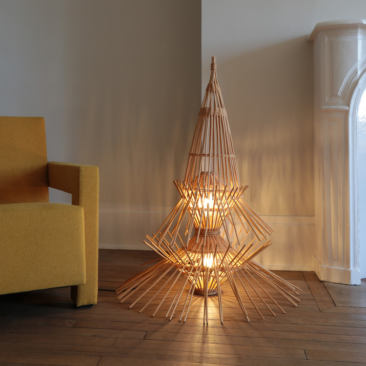 Abraham & Rol AR65 램프는 1965년 Salon des Artistes Décorateurs에서 처음 선보였습니다. 등나무 소재의 조형미가 뛰어난 이 램프는 토착민들의 전통적 랜턴의 소박한 모습과 중국의 이국적인 요소들이 결합된 디자인입니다. 1965년 아브라함&롤이 디자인했던 당시에는 출시되지 않았으나 현재 Disderot를 통해 생산되고 있습니다.